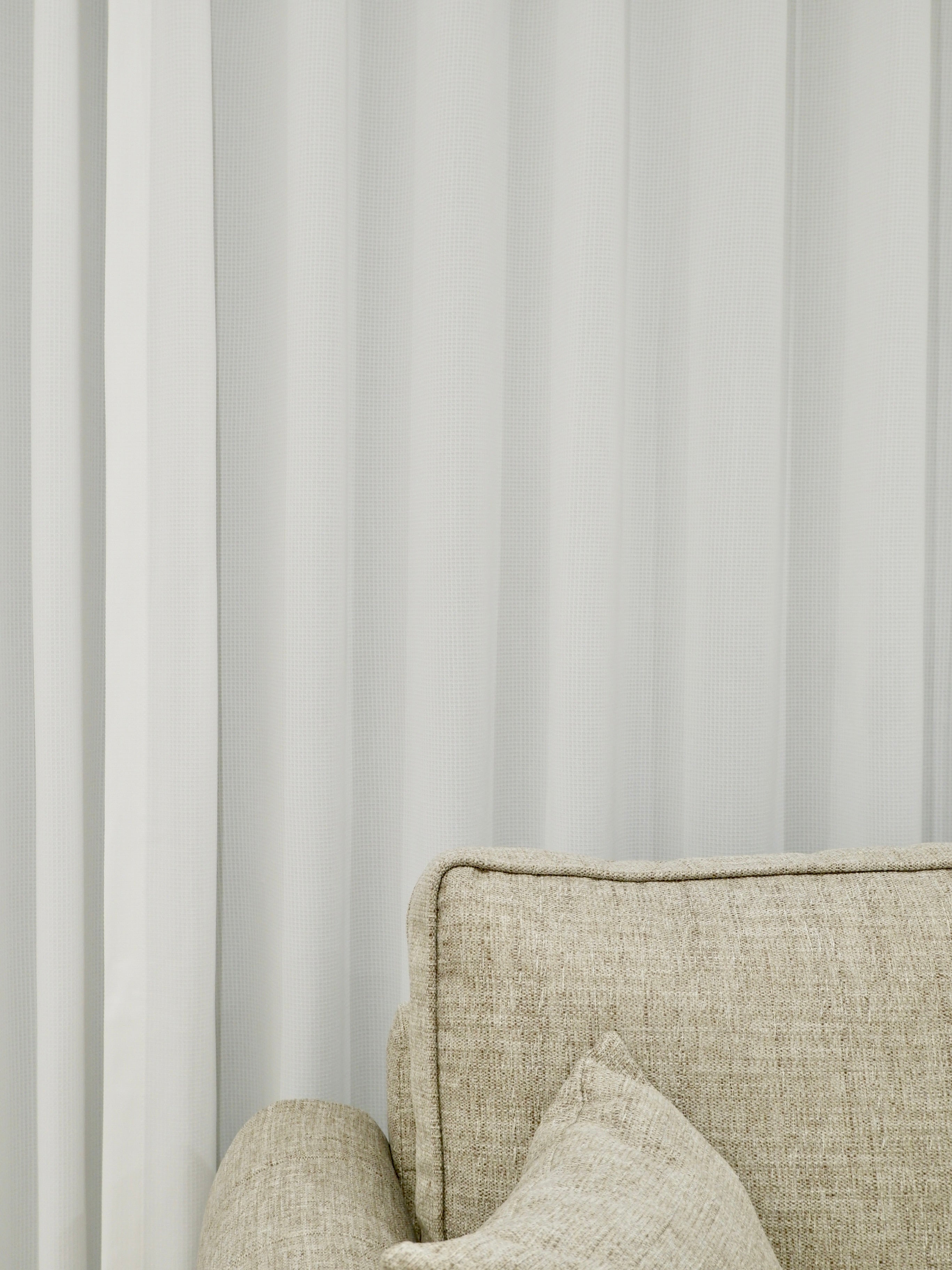 Coated backing provides effective heat and UV protection while allowing soft natural light to filter through. Ideal for enhancing privacy without compromising brightness.