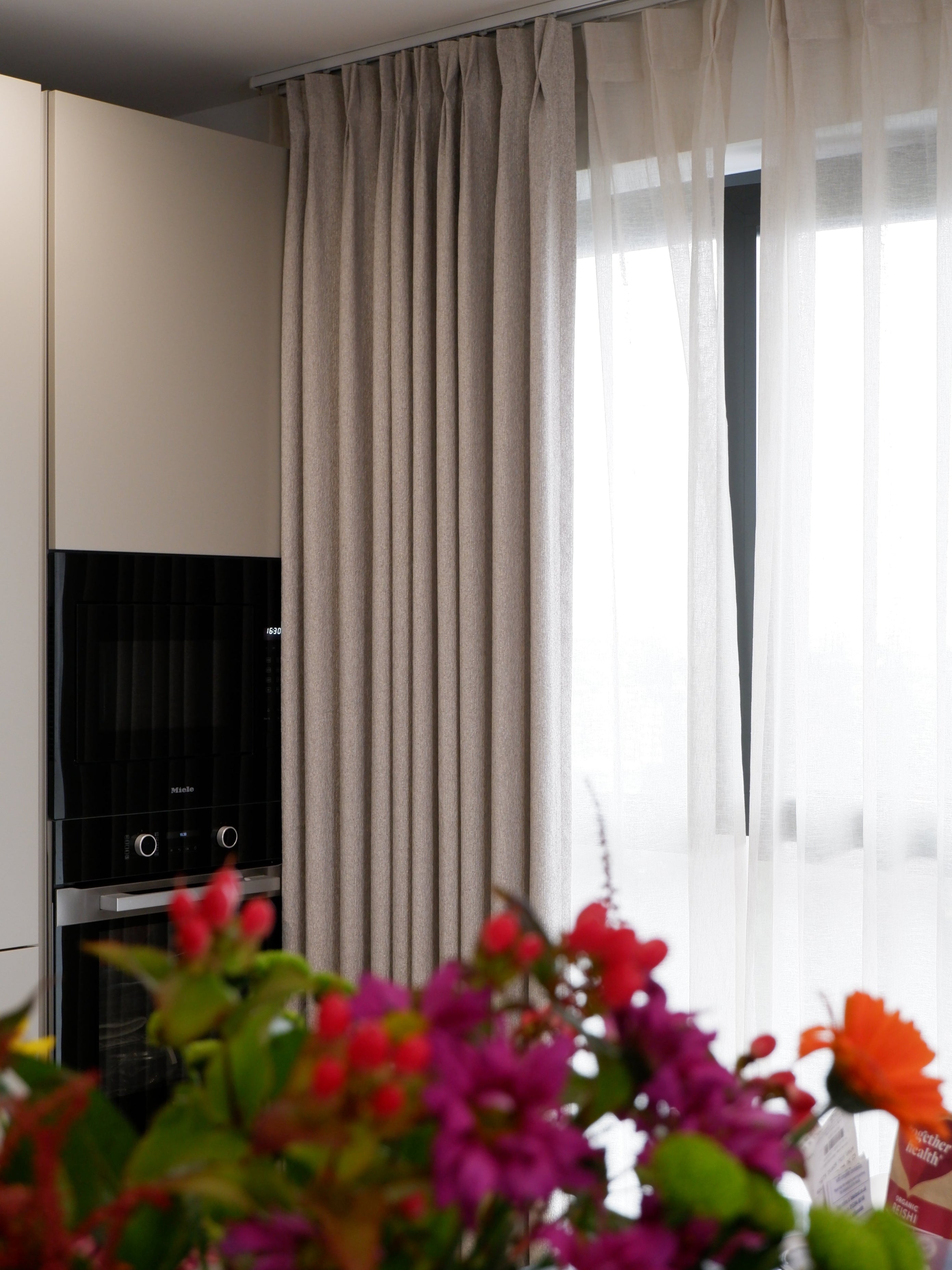 To ensure the curtains clear the window fully when open, we recommend extending the track 15–30cm beyond the window on each side, especially for wave curtains.
