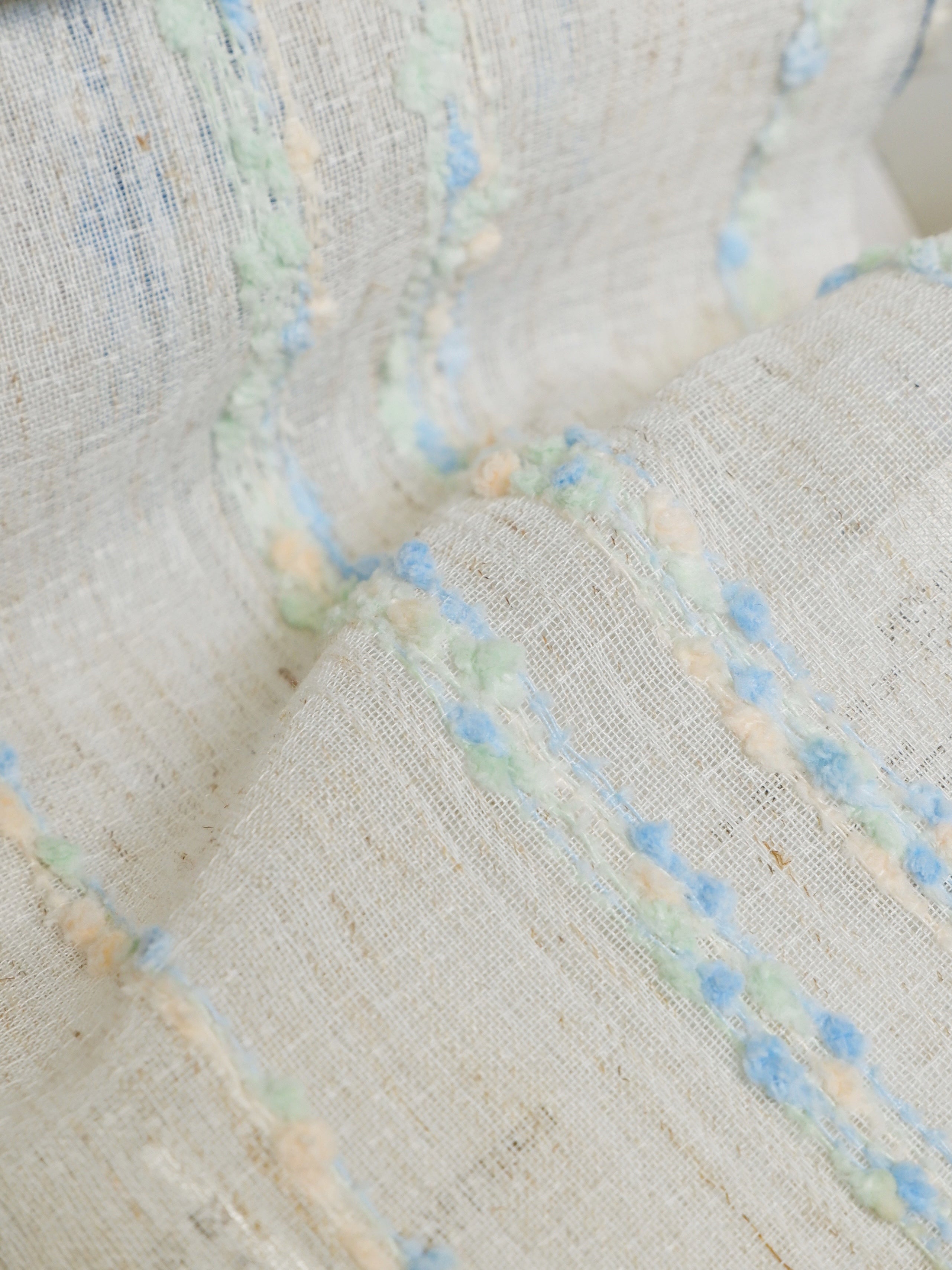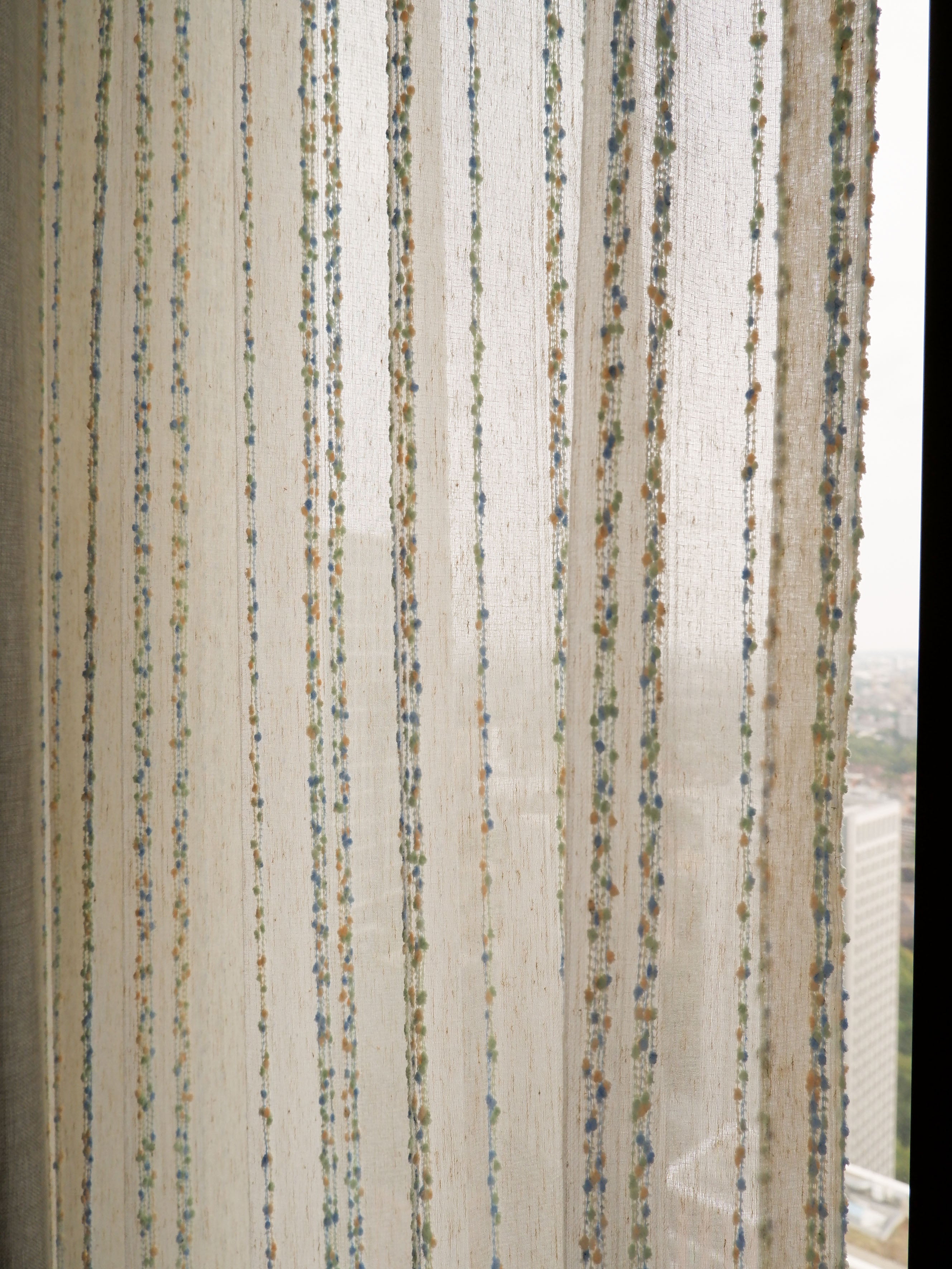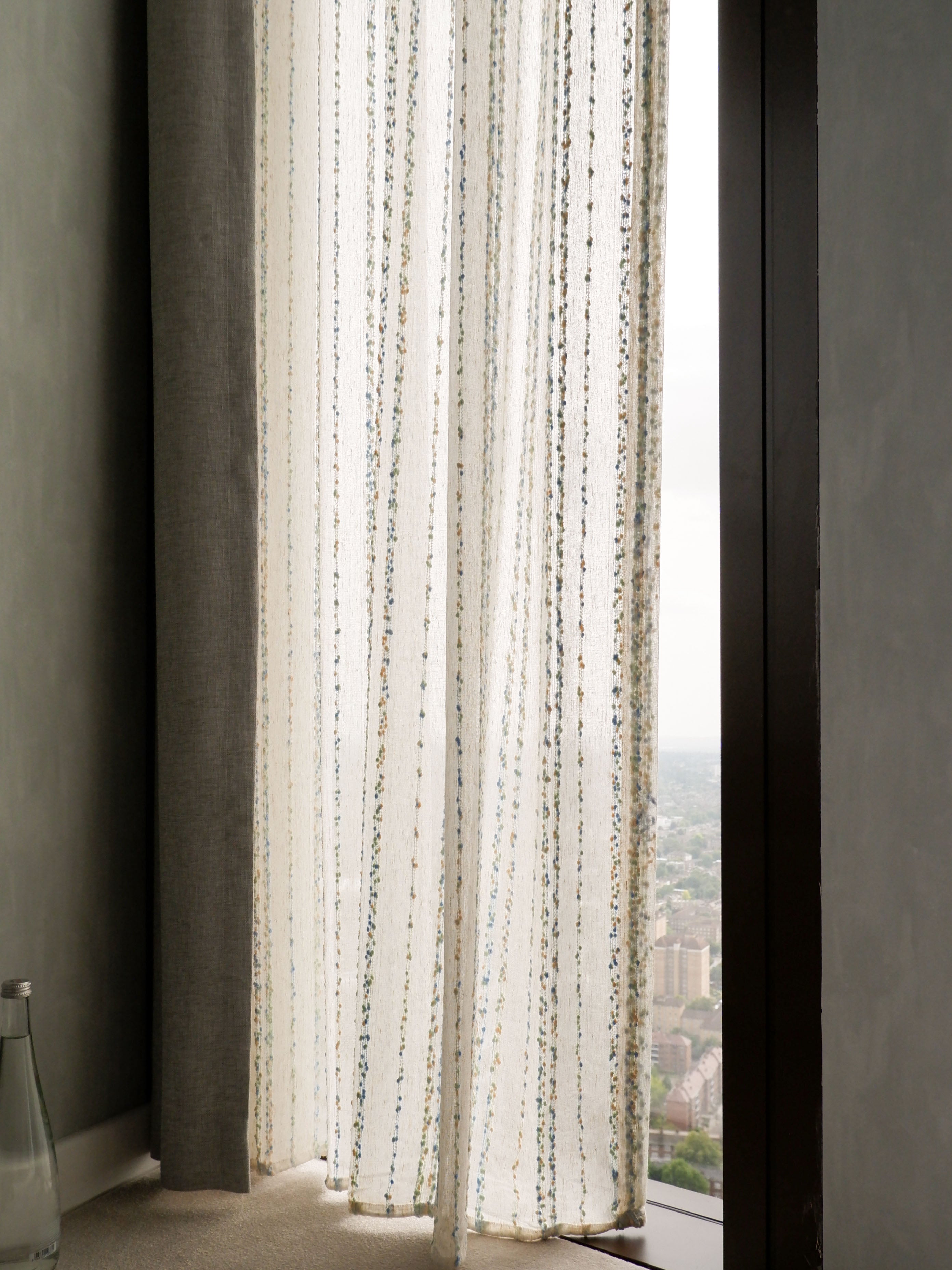 Light, delicate, and full of character — the Dottrail™ Pastel Mix sheer fabric features whimsical dotted stripes in soft pastel hues of blue, green, and peach. Its tactile texture and airy composition make it a charming addition to any interior looking for a gentle touch of color and a sense of flow. Perfect for filtering natural light while maintaining privacy, this fabric brings both warmth and style into your space.