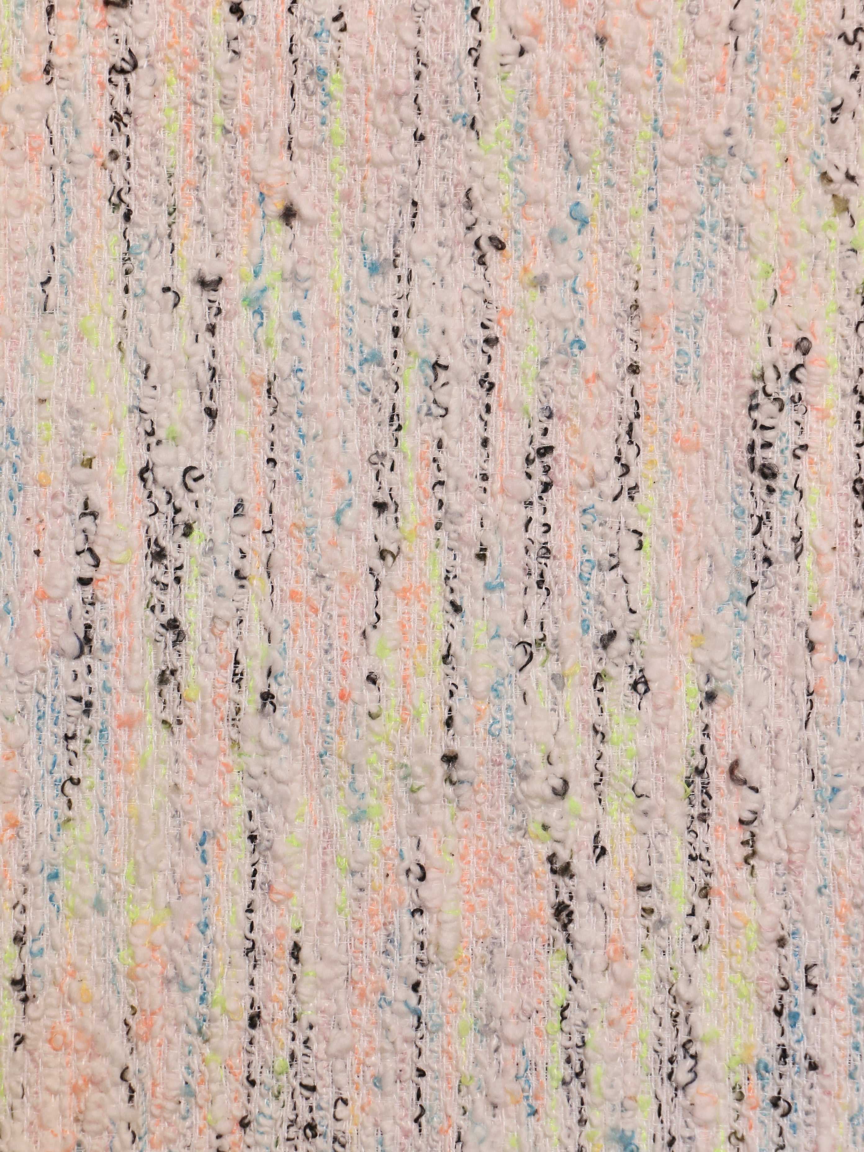 Featuring fine boucle-style yarns with flashes of neon orange, blue, lime, and black, this design brings a spark of modern energy into any room. The artistic speckled pattern on a light background creates a delightful contrast that shines in contemporary or eclectic spaces. Ideal for creative living areas, kids’ rooms, or artistic studios seeking sheer coverage with a bold personality.