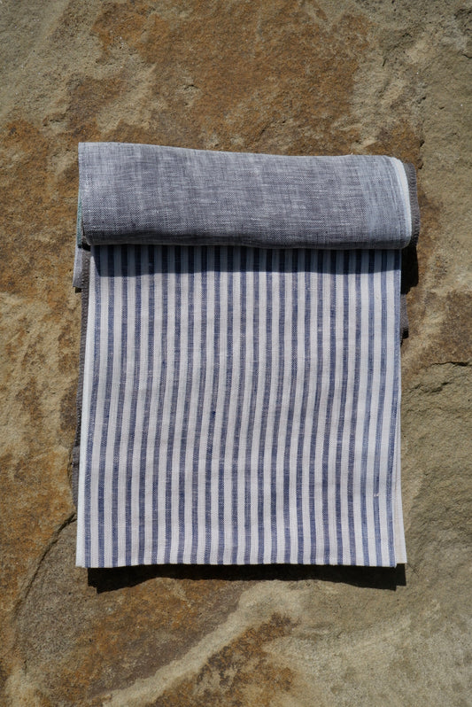 Blue & White Stripe – Woven 100% Linen Curtain Fabric, 140cm Width