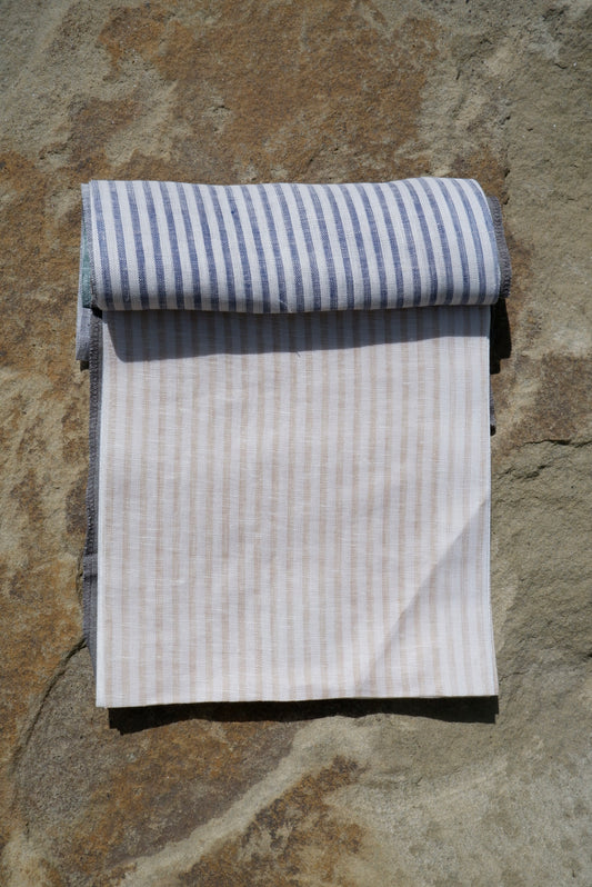 Beige & White Stripe – Woven 100% Linen Curtain Fabric, 140cm Width