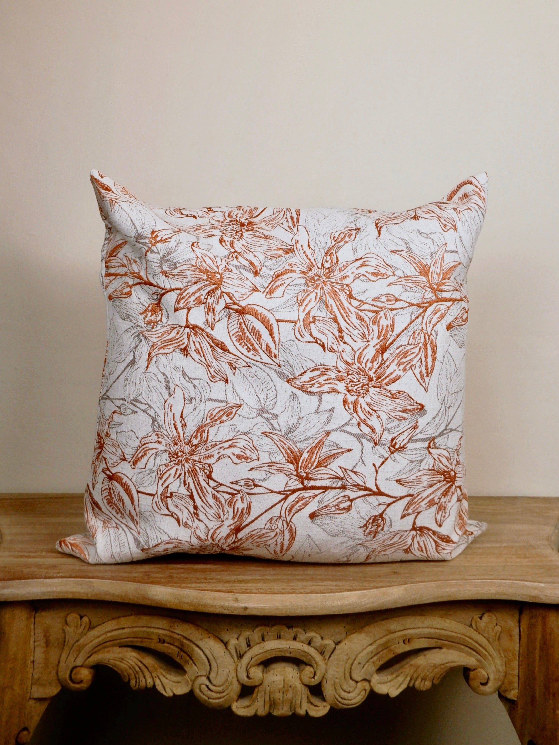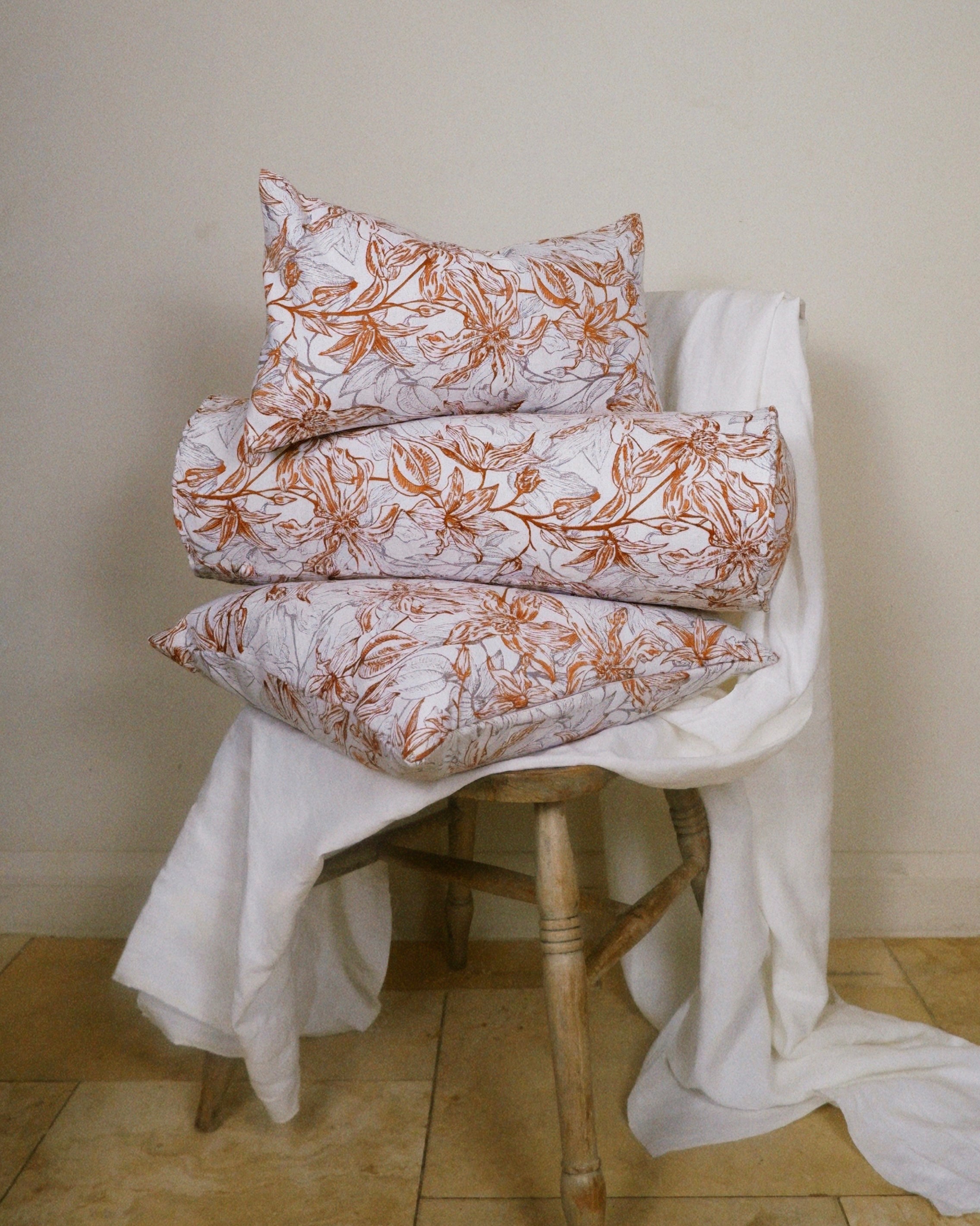 Botanical Cushions – Saffron are designed for interiors that favour texture and quiet detail. The coral-inspired pattern brings subtle movement to neutral spaces, making it well suited for living rooms, bedrooms and reading corners. Whether styled on a sofa, layered on a bed or placed on a bench, these cushion covers add depth and visual interest without overwhelming the space.