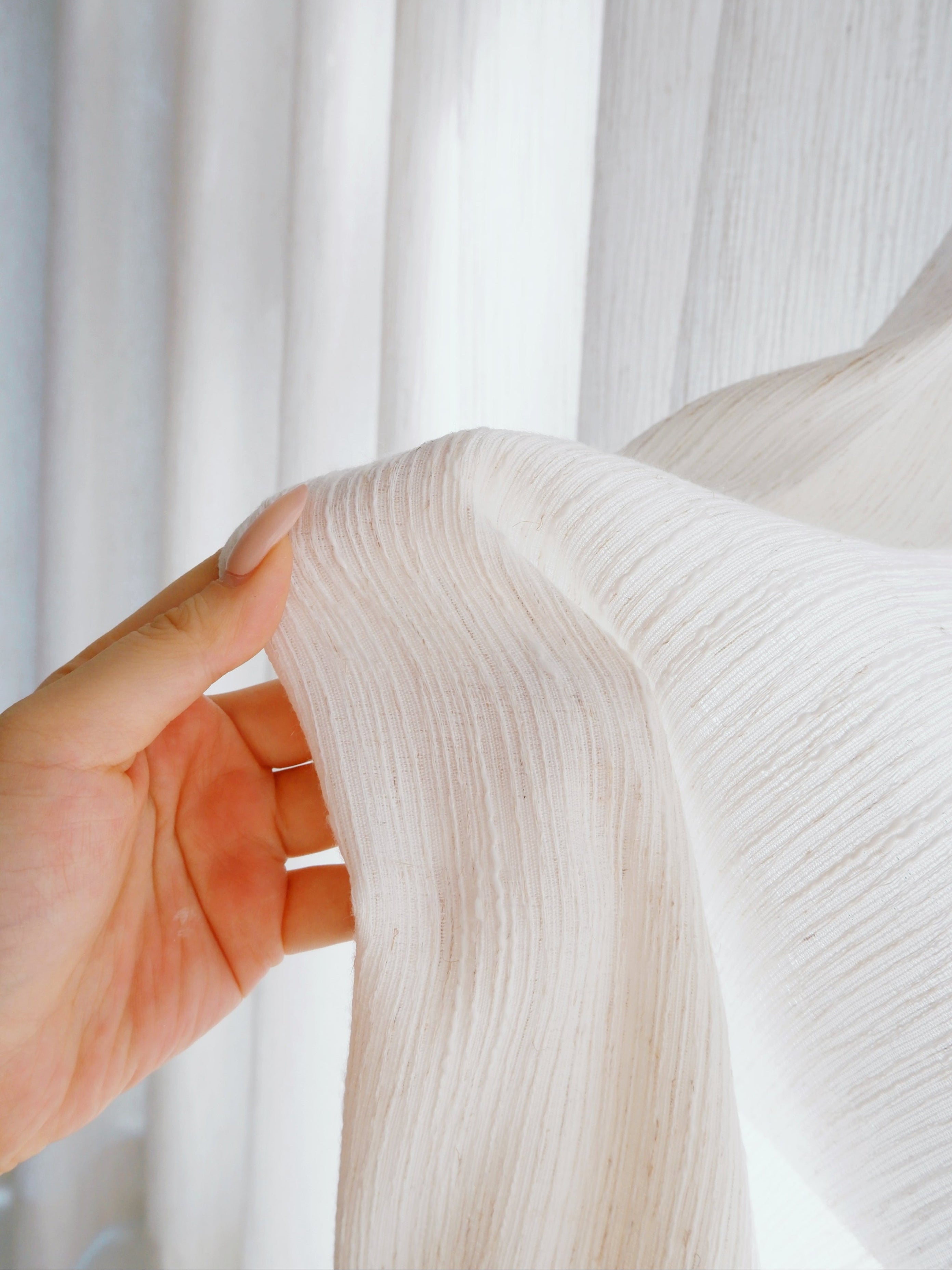 Perfect for bright, modern interiors, Lightfall Voile complements minimalist, Scandinavian, and Japandi-style homes. Its clean vertical texture adds gentle structure to open spaces, making it ideal for living rooms, bedrooms, or airy home offices that embrace natural light.